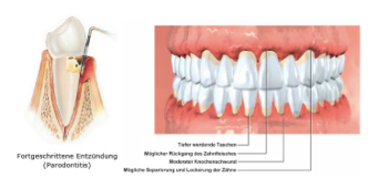 Therapie des kranken, geschädigten Zahnhalteapparates zur Erhaltung des Zahnes. Parodontitis ist eine von Bakterien verursachte Krankheit des Zahnhalteapparates. Betroffen sind das Zahnfleisch und der Knochen, die mit der Zeit sich zurück bilden. Die Zähne scheinen dadurch länger zu werden und zeigen eine erhöhte Beweglichkeit